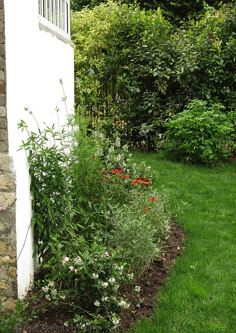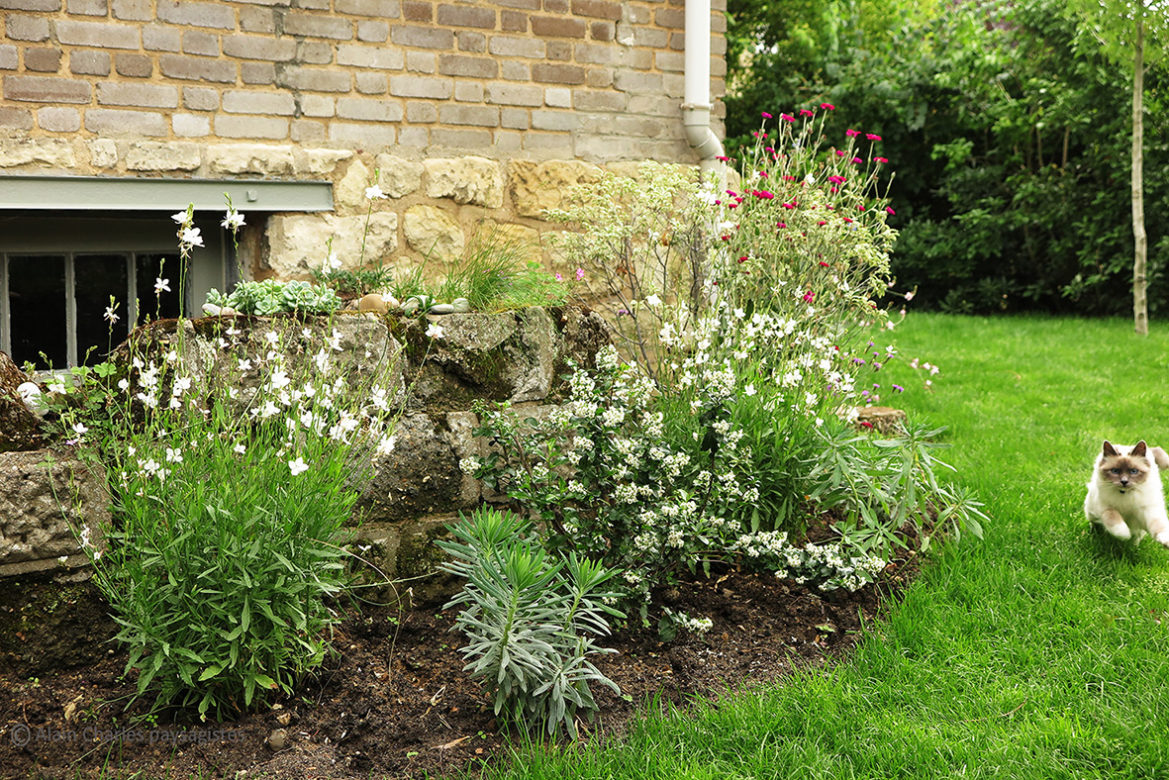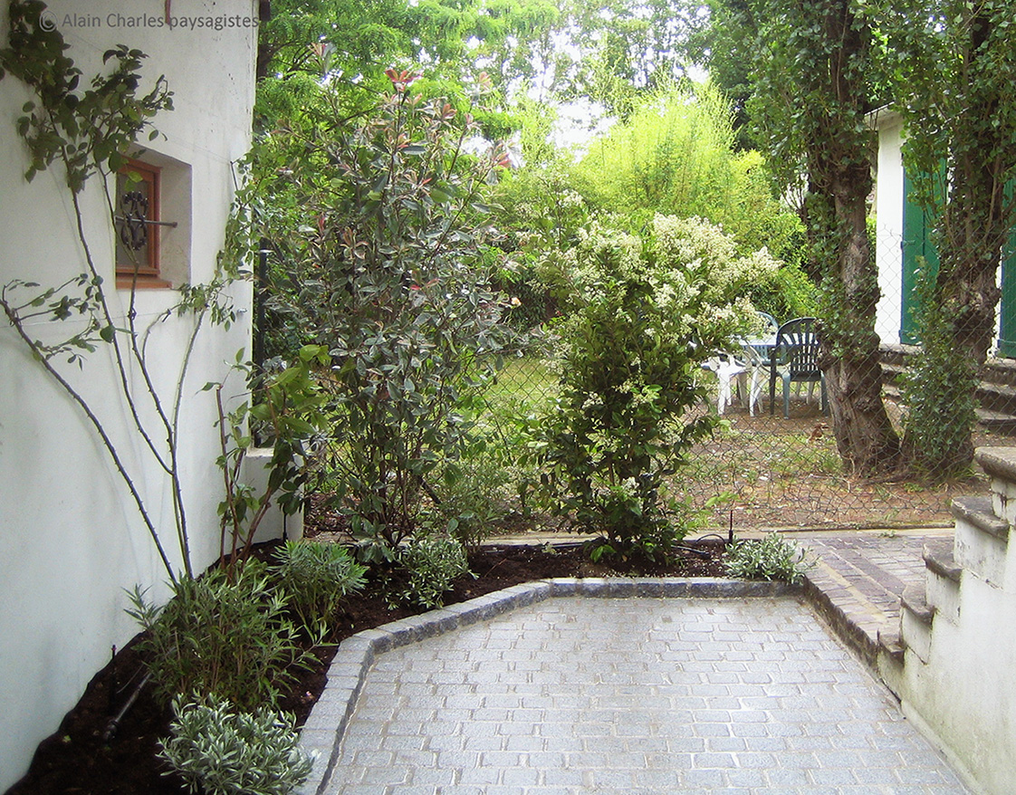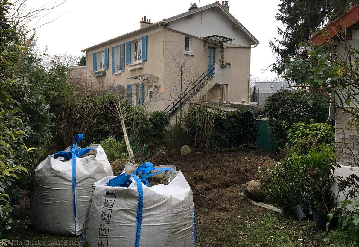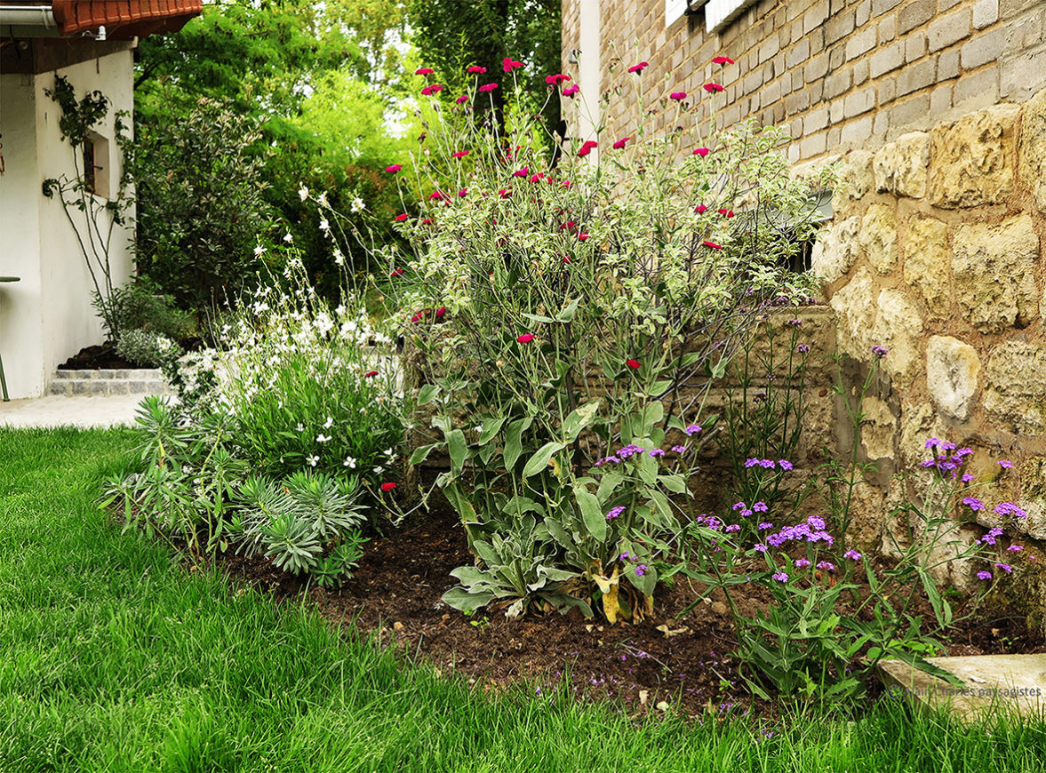 Après avoir emménagé récemment, les clients souhaitaient donner une coloration à leur jardin pour qu’il dialogue mieux avec la maison et leurs envies. En effet, le jardin était très classique, un peu basique. La sélection végétale classique est réalisée en poches de plantes caduques et de persistants, alors qu’elles devraient se marier pour donner à voir les saisons et marier les qualités des végétaux. Les plantations sont implantées seulement en pourtour du terrain, empêchant ainsi de donner de la profondeur aux lieux.