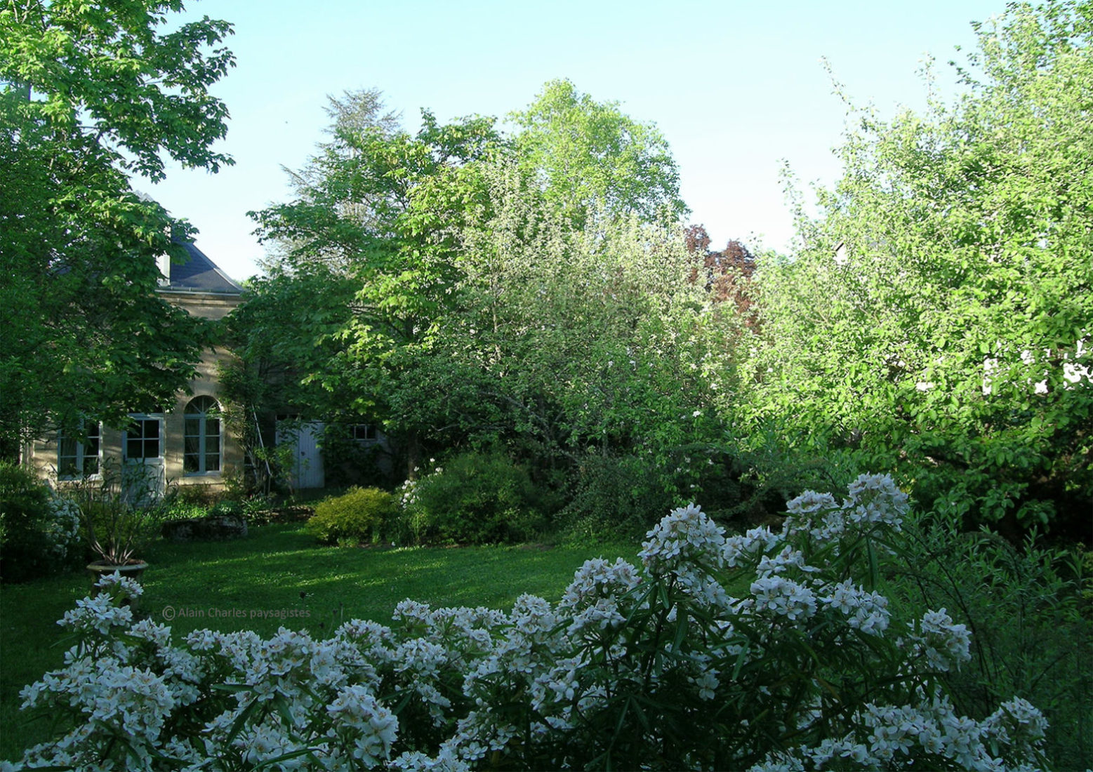 Jardins LibresDans une ville du pays de Georges Sand, nous intervenons pour profiter d’un jardin fouillis, au léger relief irrégulier. Caché derrière les murs, le jardin fournit de l’intimité. Le jardin n’est pas jeune_il date du grand-père_ mais il apporte quelques fruits pendant la saison.