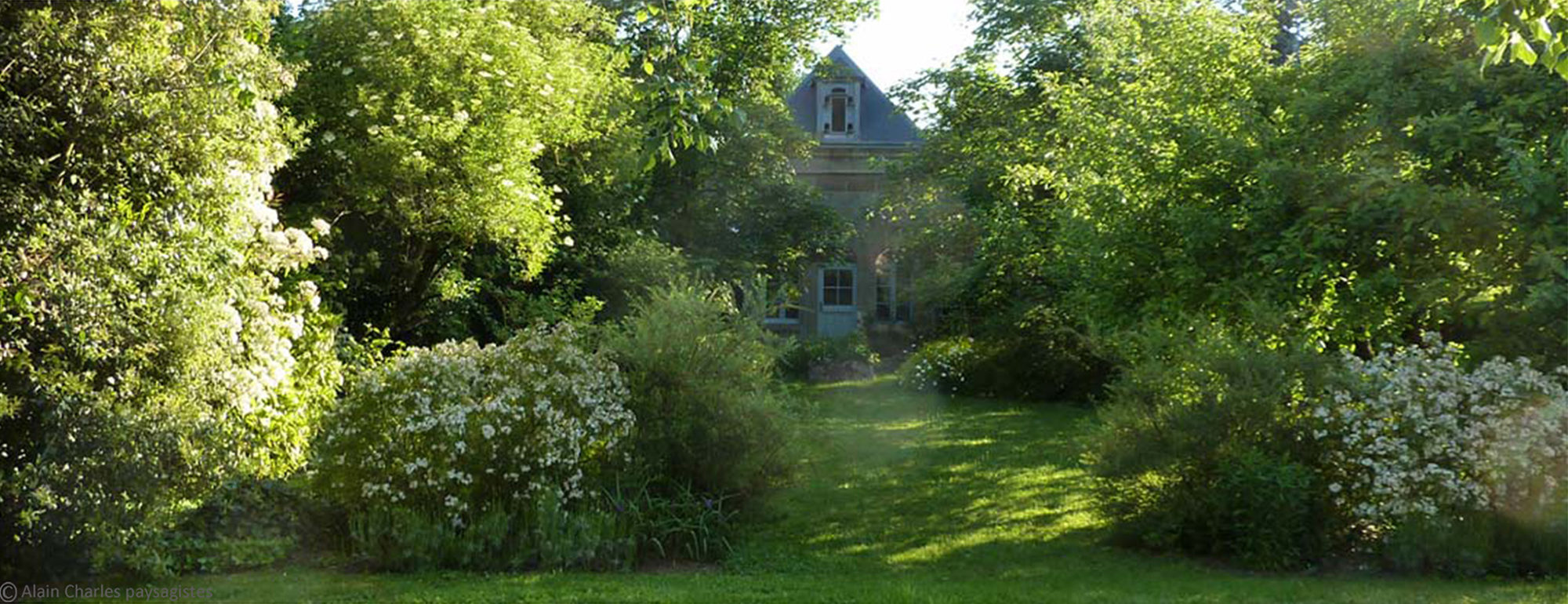 Nous avons le souci de faire apparaître un jardin à l’apparence modeste dans un territoire rural, embelli par le pavillon de jardin. Pour suggérer la perspective, nous créons une structure de jardin simple et classique : des parterres plantés simplement de végétaux à la floraison estivale, quelques vivaces. Et à force d’allier le contraste entre des plantations rustiques et l’écrin architecturé du jardin hérité, l’organisation du paysage et le geste jardinier disparaissent.